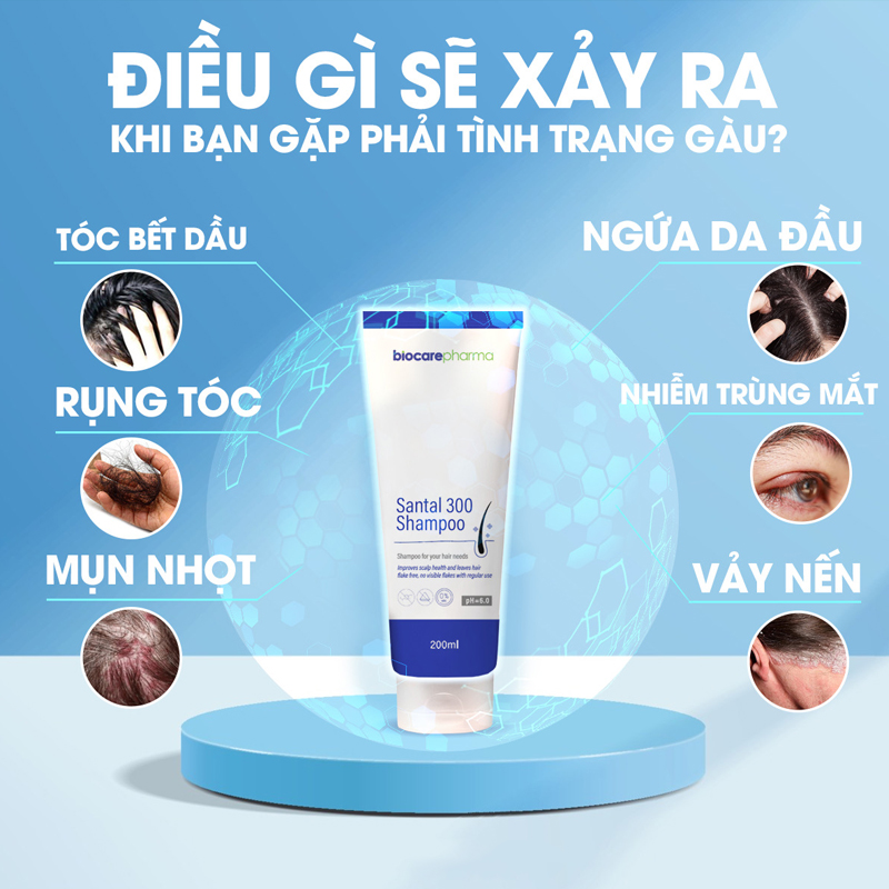 - Hỗ trợ trị gàu ngứa, nấm – Dầu gội Santal 300 Shampoo với công thức cải tiến và kết hợp với các thành phần thảo dược tự nhiên như bồ kết gai, hà thủ ô và Piroctone Olamine. Chỉ sau một vài lần sử dụng, giúp bạn làm sạch nhẹ nhàng, loại bỏ và ngăn ngừa gàu, nấm quay trở lại.