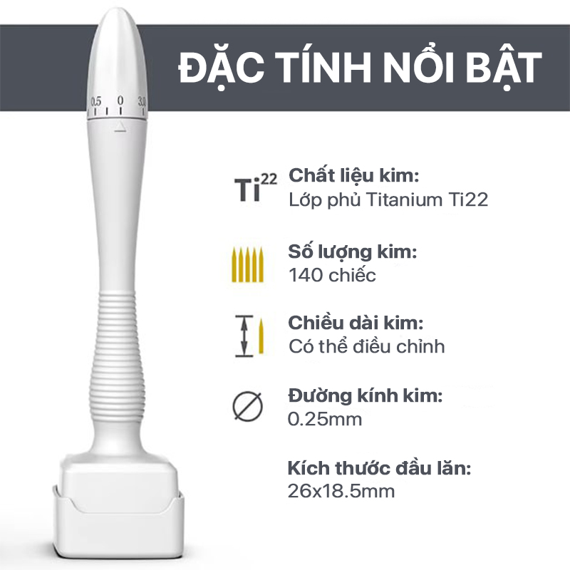 - Mũi lăn kim được làm bằng thép y tế, thân thiện vô hại.